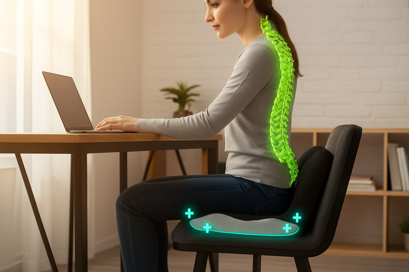 Sitt mer behagelig – lengre. Den ergonomiske sitteputen avlaster trykk fra haleben og hofter og hjelper kroppen inn i en mer naturlig sittestilling, slik at ryggen føles bedre gjennom arbeidsdagen, på bilturen eller ved spisebordet.